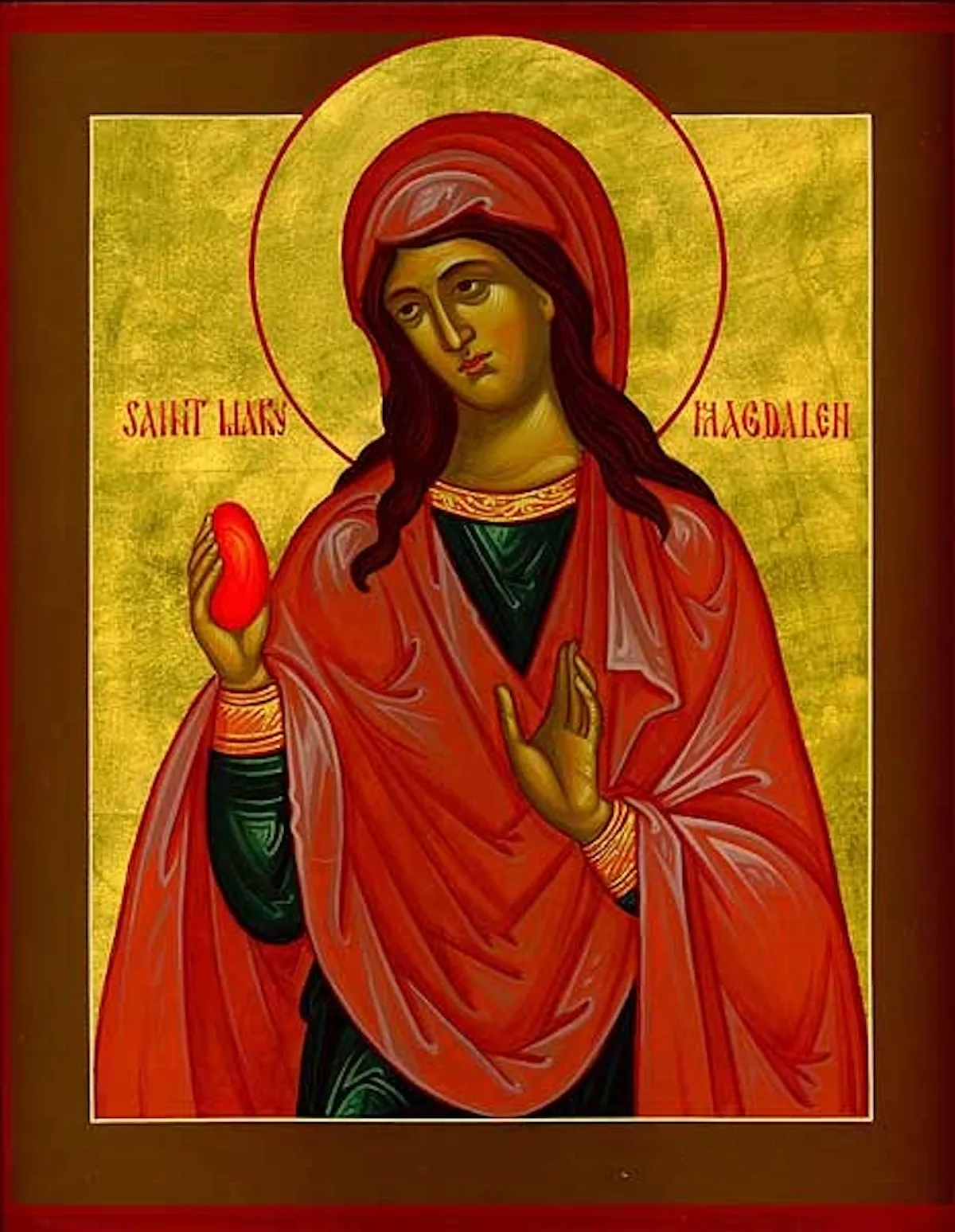 There is an old story that the tradition of painting Easter eggs red originated with Mary Magdalene. She boldly appeared before Emperor Tiberius and declared, “Christ is risen!” Tiberius gestured to an egg she held and said, “Christ has no more risen than that egg is red.” Immediately, the egg turned red as a miraculous sign to show the truth of her testimony.